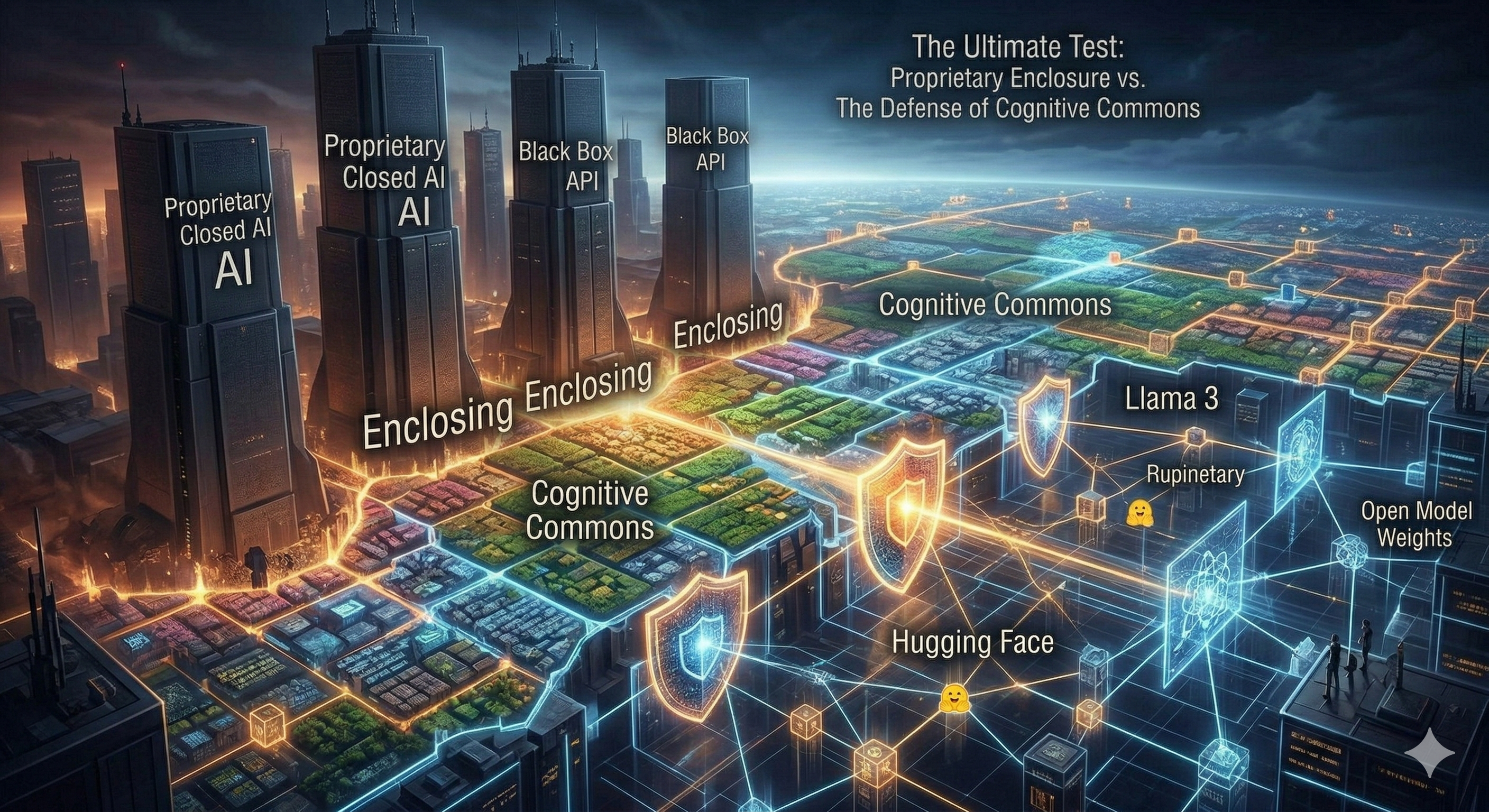 如果少数几家科技巨头,利用全人类的数据公地训练出超级大模型,随后将其彻底封闭在专有 API 的黑盒背后,这无异于 21 世纪的“圈地运动(Enclosure Movement)”。