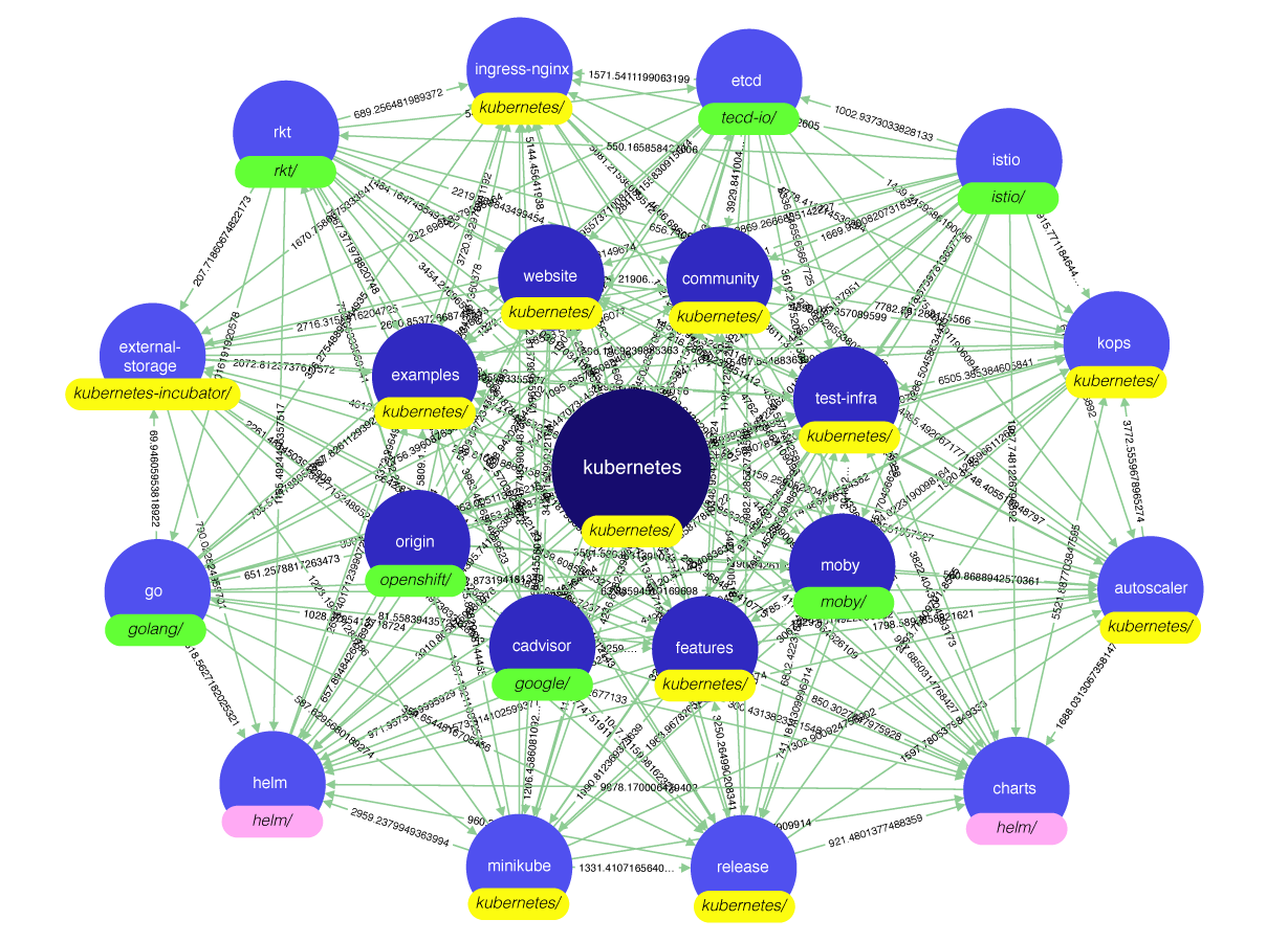 上图来自阿里巴集团开源治理办公室-高级社区经理 赵生宇的研究成果展示。