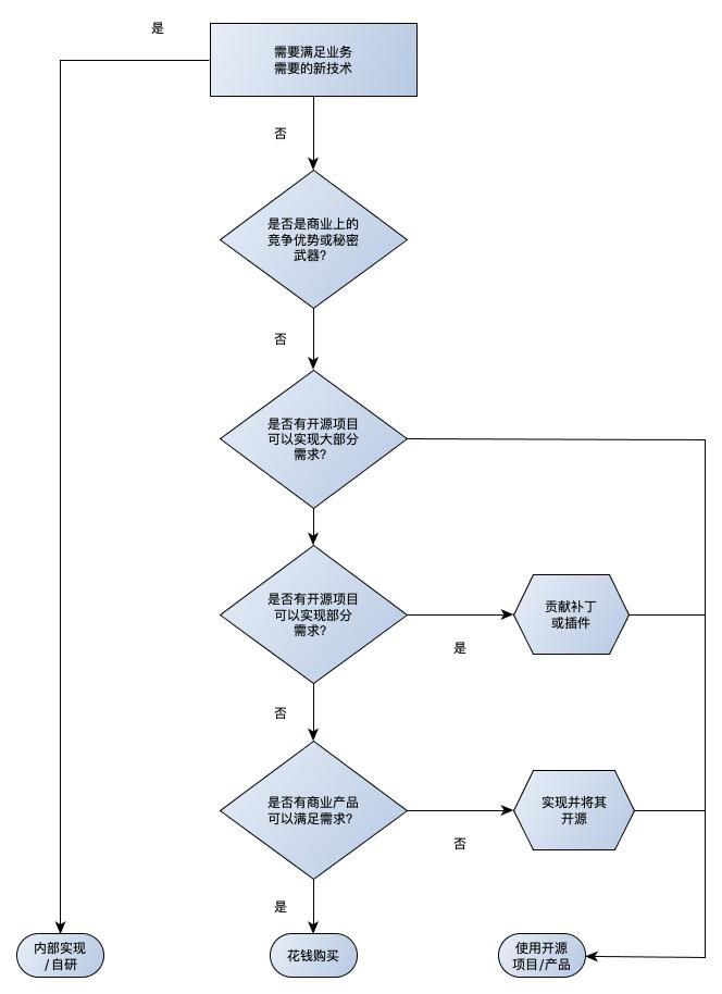 当理解了开源的互惠、合作的生产方式和发布方式,以及做事的风格,那么就可以给自己所要引进的开源项目列一个规划,类似下图所示: