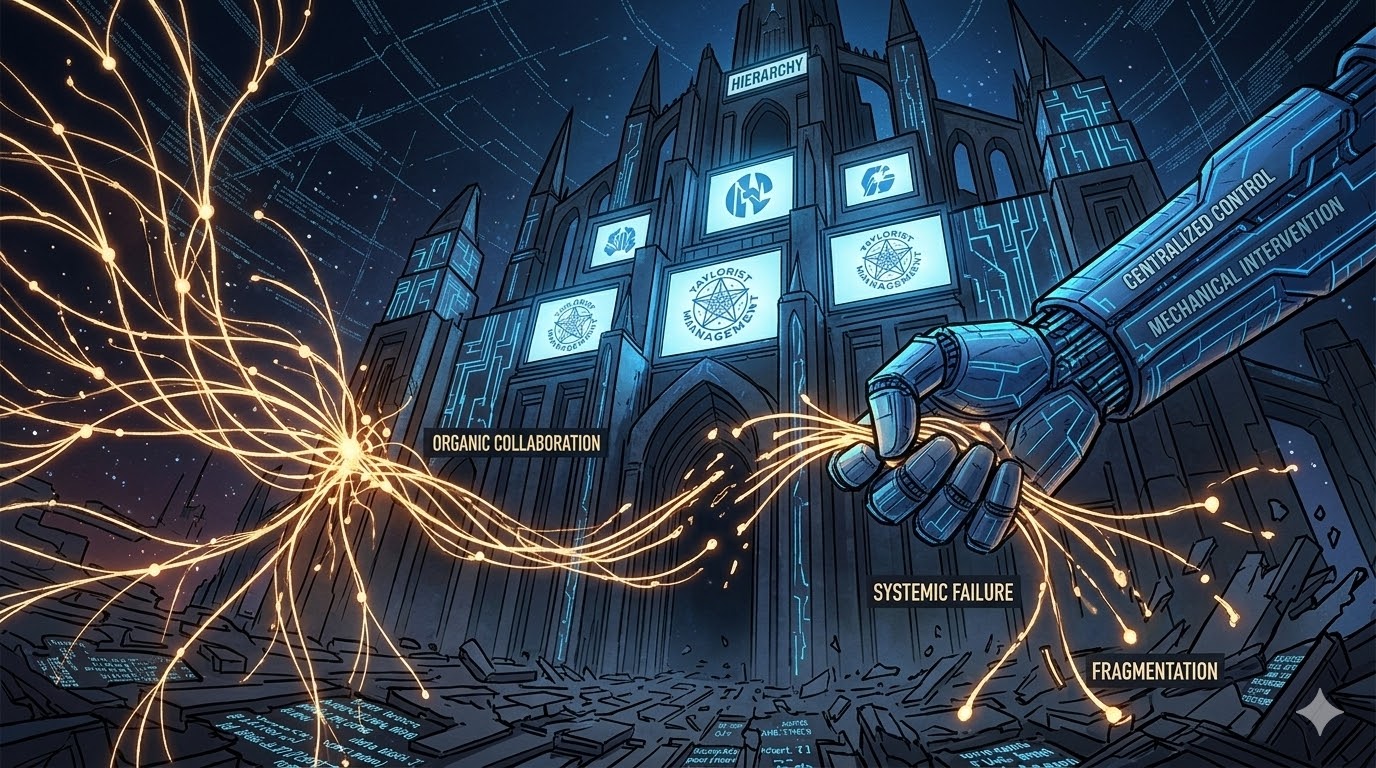 当极其复杂的微观认知协同网络,被泰勒制(Taylorism)的科层流水线粗暴肢解;当主导了前沿创新的顶尖智力,被管理层视为可以随意插拔、替换的“高级齿轮”;当本该是全球极客平权协作的创新公地,彻底沦为巨头们在财报和资本市场上阻击对手的营销修辞与“倾倒场”——那座名为“数字制造局”的科层制大教堂,终于露出了它极其冷酷的底色。