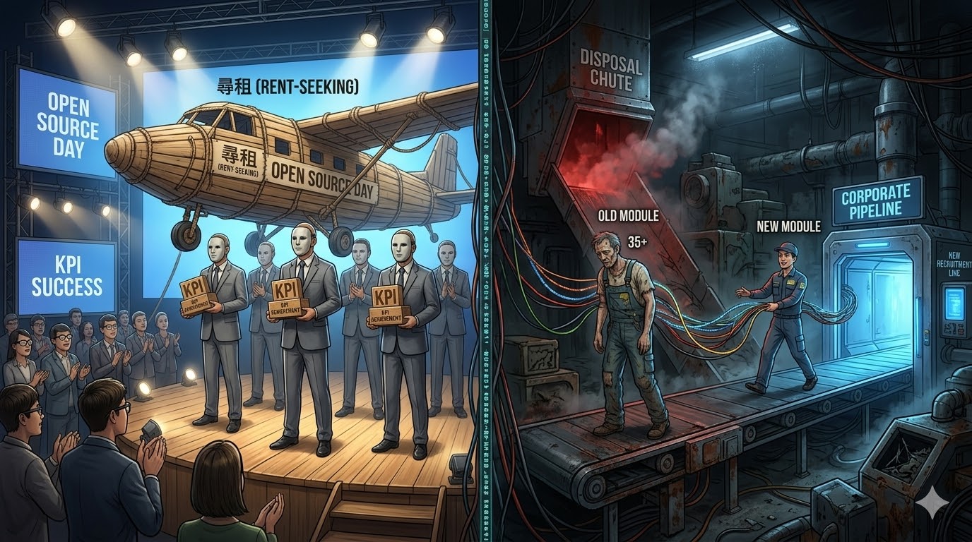 他们用抛弃开源社区(真正的长期期权和个人信誉背书)为代价,换取了大厂的高薪。他们以为自己是规则的制定者,其实只是大厂购买的、有效期只有十年的“高价耗材”。到了35岁,当这块肉身模块的并发处理能力(体力)下降、维护成本(薪资预期)过高时,大厂的系统会毫不犹豫地调用“替换期权”,换上一个更年轻、更便宜的模块。