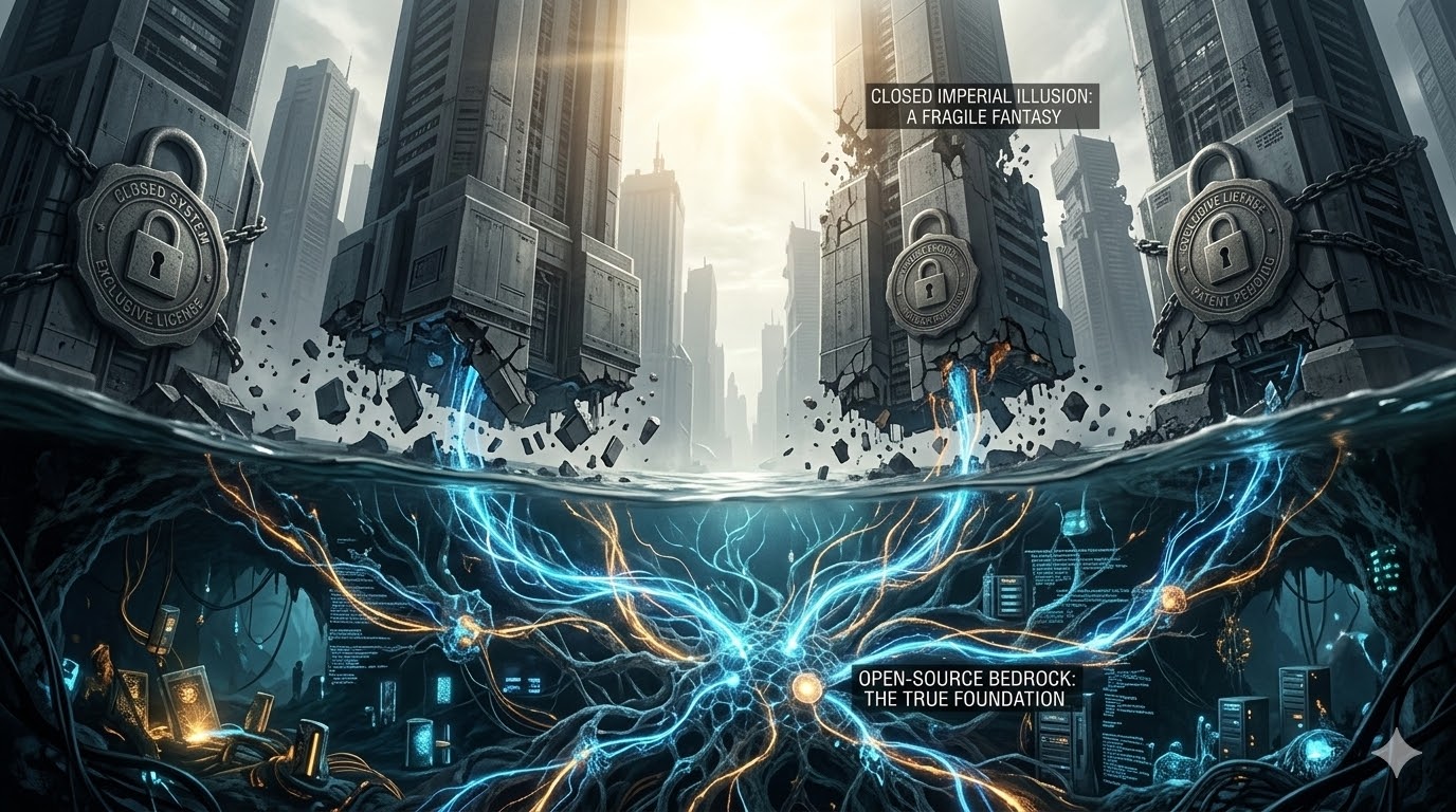 这些封闭的巨兽,试图将人类数千年积累的“认知公地”彻底圈禁在专有的 API 背后。这不仅是商业上的垄断,更是信息时代最彻底的一次“认知圈地运动”。在这样的庞然大物面前,任何单一企业如果试图用传统的科层制、用筑起更高专利高墙的方式去抵抗,都无异于螳臂当车。