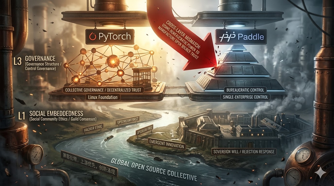 历史的路径依赖在当下的人工智能浪潮中重演。当百度(飞桨 PaddlePaddle)或华为(昇思 MindSpore)抛出其庞大的深度学习框架时,它们面临着相同的信任赤字。一个从未在“上游”泥泞中证明过自身契约精神的企业,其发布的底层框架必然被职业开发者视为巨大的“信用盲盒”。防范性撤离成为了博弈论中的唯一占优策略。