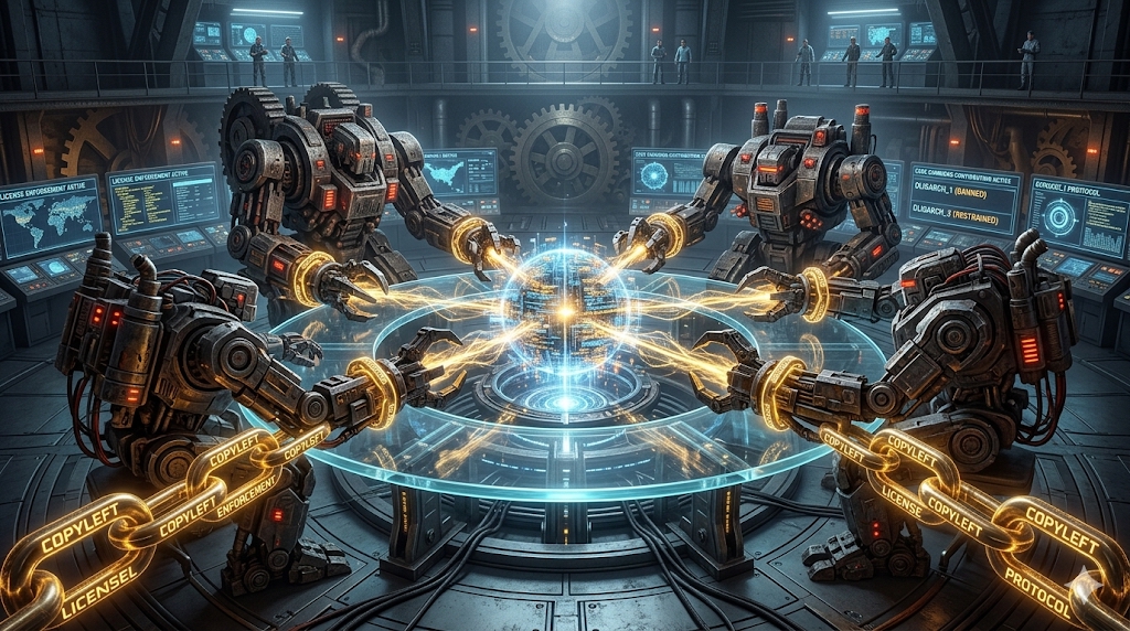 Copyleft 从来不仅仅是一种软件分发许可证。它是人类在充满摩擦与猜忌的前现代泥沼中,硬生生砸出的一块现代性飞地。它是一面文明的标尺,丈量着我们对契约的敬畏、对平权的渴望,以及对人类共同命运的终极期盼。